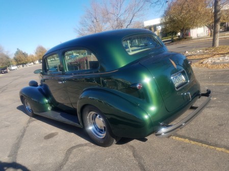 On Friday we had been reminiscing with Bob about his younger days. One memory he shared concerned his 1940 Torpedo, two-door coupe. We looked up some pictures, it was quite the car. Carl and I thought for a moment we had found that car in a nearby parking lot.