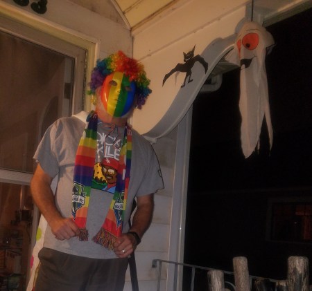 Mr. Rainbow is also his attempt to share my last name, or at least get close. Rainbow, rain stripe, something with rain. And thankfully the rain held off until after the neighborhood kids made their rounds.