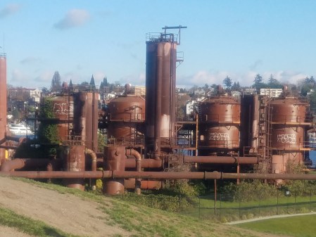 During the first mile I concentrated on finding the sunny side of the street. After some discussion we settled on Gas Works Park as our destination.