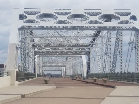 The John Siegenthaler pedestrian bridge over the Cumberland River. Saved from destruction as a historical structure. Named for John because he saved a man from jumping off the bridge when he was covering the story as a reporter.
