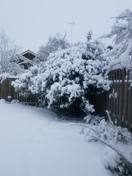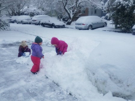 I don’t have a snow shovel, so I used a garden rake. 🙂 It worked, but only because the snow was so light and dry. It looks like you have a lot! I think I have at least a foot.