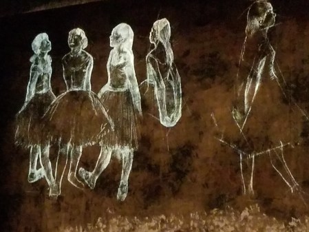 I think it has a chance, and I would be able to say, “I saw it when…”. Aside from the actors and dancers, they did some projections on the scenery that I thought were compelling. In the opening number they add color in brushstrokes as Marie dances around the stage. During intermission they projected Degas’ sketches for the sculpture on the curtain.