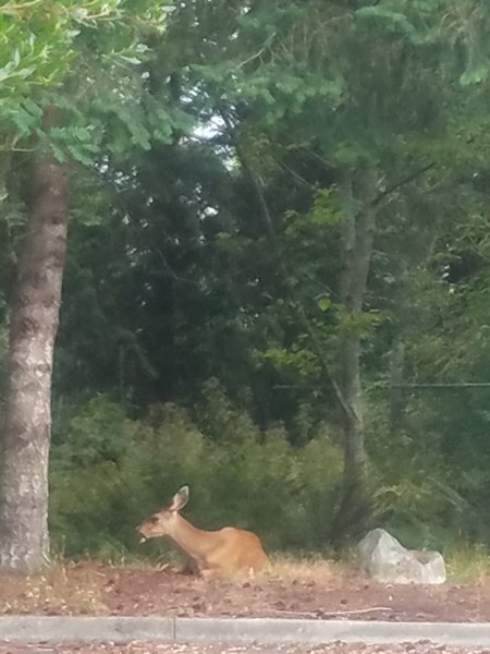 Most folks left work before I did. With the cars gone, this fine fellow decided to take a break. I’m wondering if the location was chosen to have a soft surface but get some radiant heat from the parking lot.