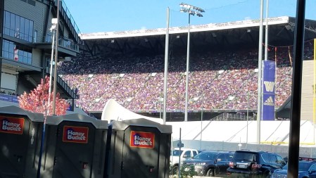 I didn’t get a picture of all of the bicycles, or the crowd control set up for the light rail. In the end the Huskies lost, and we got a 5 mile walk.