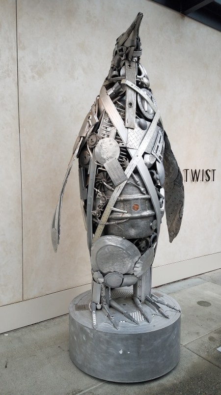 Friday I got to join Carl at his job. Dean and I joined Carl at the zoo. We saw the penguins, and a play area, and a food court area where we were the only non-workers in the place, and the workers were busy transforming it into a fundraising event. Not much zoo sights.