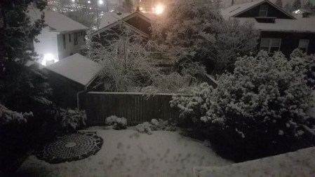 Carl took advantage of the midday lull in snow and took the Prius in for its every 5000 mile wellness visit. The appointment is today, but driving and busing (home) is more pleasant when it is lighter out. Notice I didn’t say sunny. At 210,000 miles the car is still running well. But we’ll hear later what conditions have popped up. And hopefully Carl will be able to reverse the bus to car to home route, during today’s lull between snow.