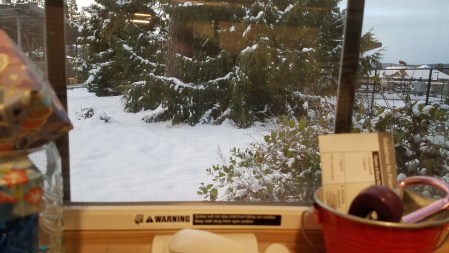 I will need to wait until we get to work for new snow pictures. The much anticipated overnight snow storm materialized noth of Seattle. After 2 days with snow and late starts, Seattle Public Schools canceled school last night, and no snow…