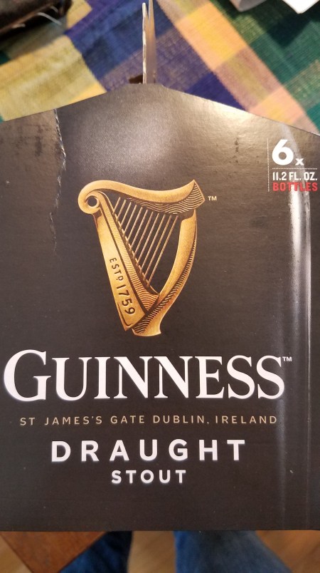 Today’s purchase included Guinness. For St. Patrick’s Day celebration. And some canned black beans, more broth and some cheese. Still no lentils.