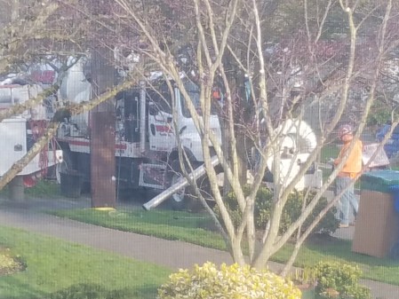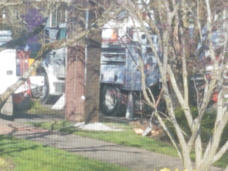 The real excitement was the replacement of the power pole in front of our neighbor’s house. The work started around 7:30, and was done a bit after 10:00.