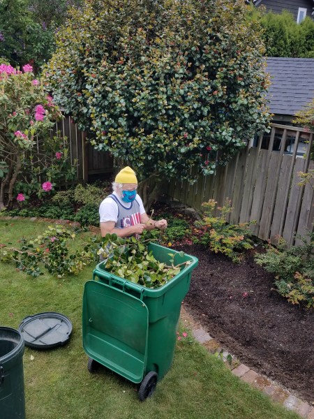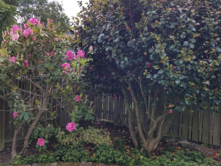 The camellia pruning is a project that needed to happen. It is growing into a rhodie and is way too tall.