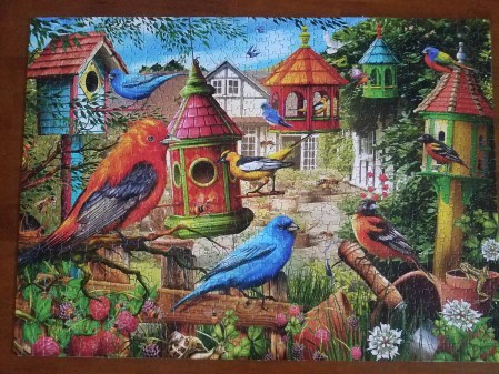 We got through another jigsaw puzzle. Colorful again, and challenging, but not quite as entertaining as the butterflies. Still, a calm activity. One piece, two or a session, it got completed.
