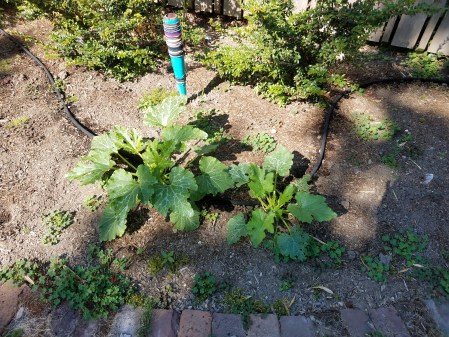 And the garden is progressing. The first tomato is almost ripe, and the zucchini leaves are well established.