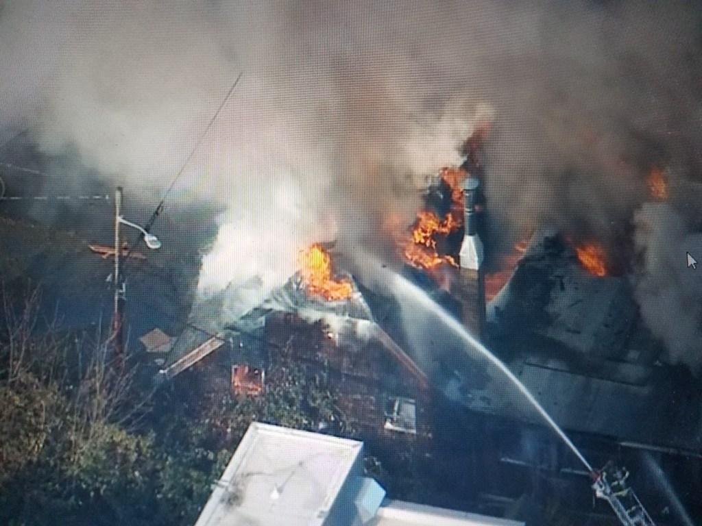 The big neighborhood news today was the fire at the old, closed Seven Gables Theater, a few blocks south of us. We heard the sirens, the theater was half a block from a fire station, but there were many sirens. I looked up the fire call and figured it was most likely the theater because it was a boarded up building, likely providing shelter to some transients. The other choices for the reported intersection were the public library (horrors), a newer retail/apartment building or a small strip mall type restaurant. We could see the smoke and they ended up closing several of the streets in the area.