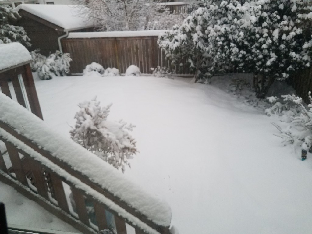 This means big flakes often result in a small amount of snow, that doesn’t last. Small flakes take their time, but pile up and last. The flake difference reflects the temperature and water content. It is cold today and there is no sign of the snow slowing yet.
