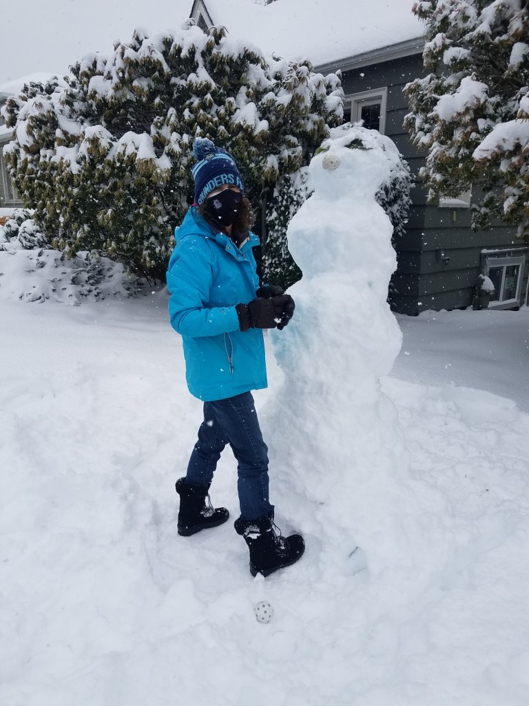 That is a huge and very creative snow creature. I love chili in this kind of weather. I made some for the Superbowl and just finished off the left overs yesterday. We’ve had both the little and the big flakes here today.