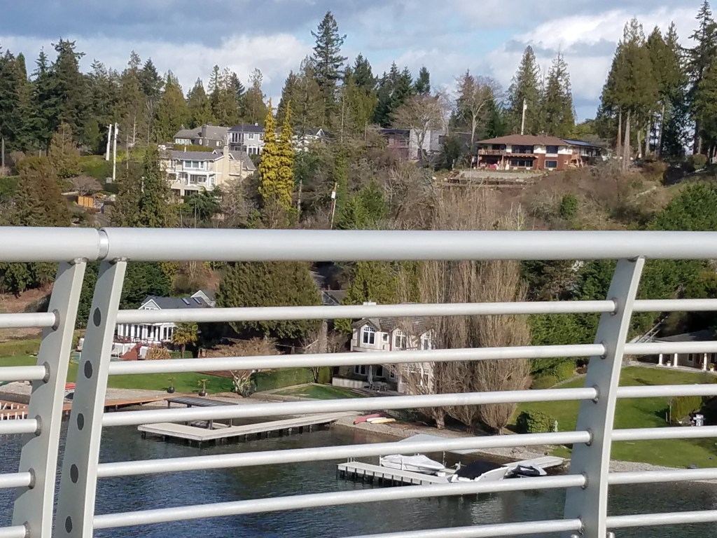 Saturday we took another long walk, this one over and back across the 520 bridge. We chose this because the westbound lanes next to the trail were closed for the weekend, so the car noise was minimized. A bit over 6 miles, but most on hard concrete.