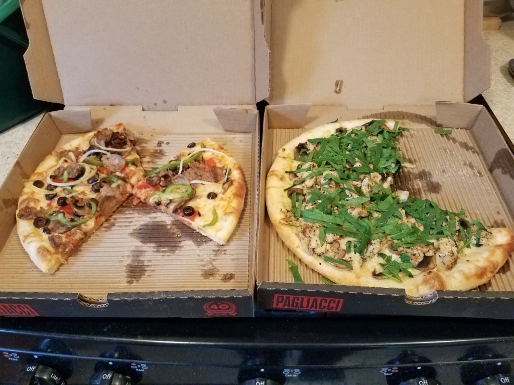 Pagliacci had their annual 2nd 11-inch pie for $3.14. And we took them up on the deal.