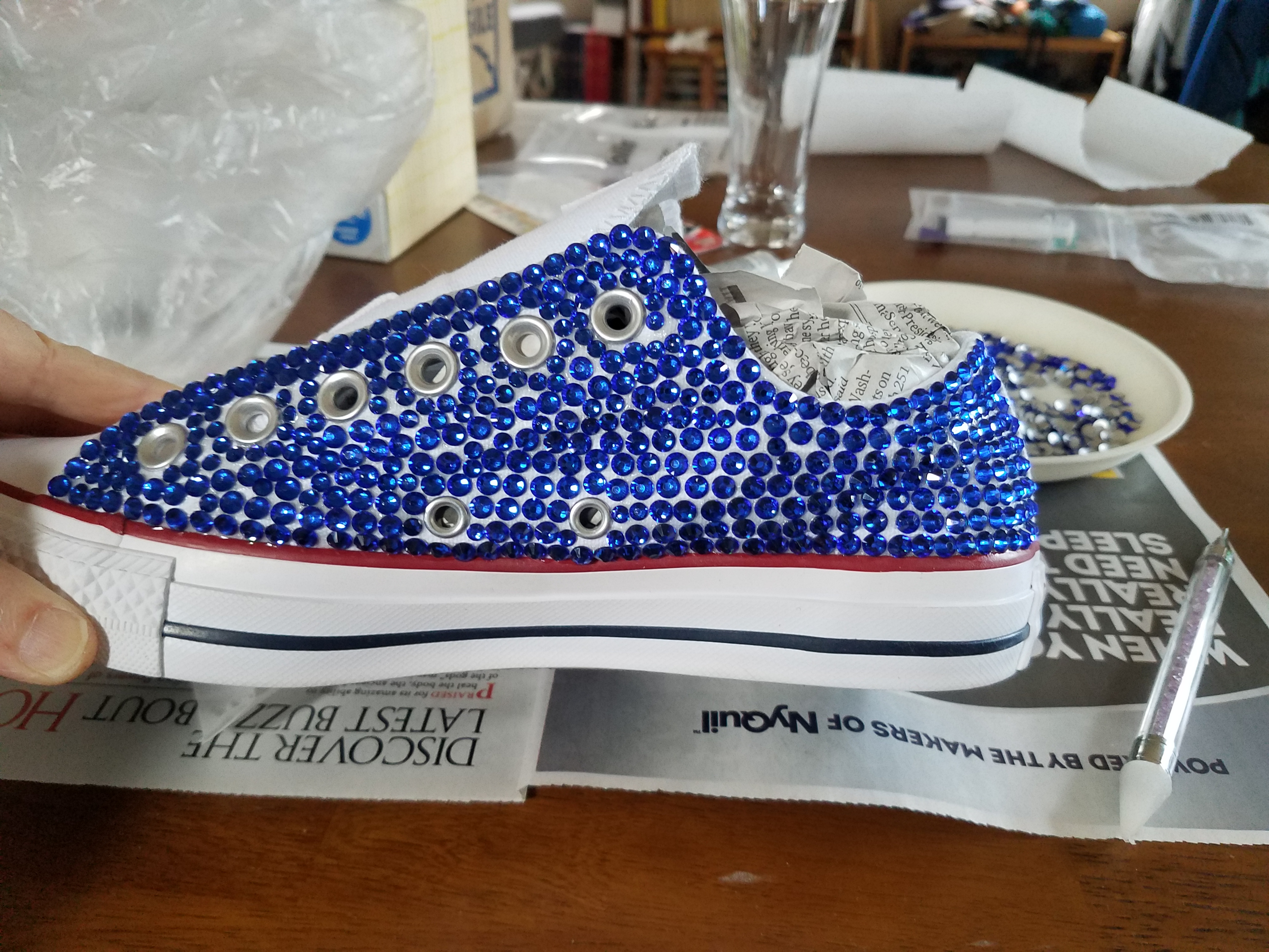 About one fourth of my project is complete. Saturday’s fun. That is one of four pairs. I couldn’t proceed on Sunday because I was missing one piece or another.
