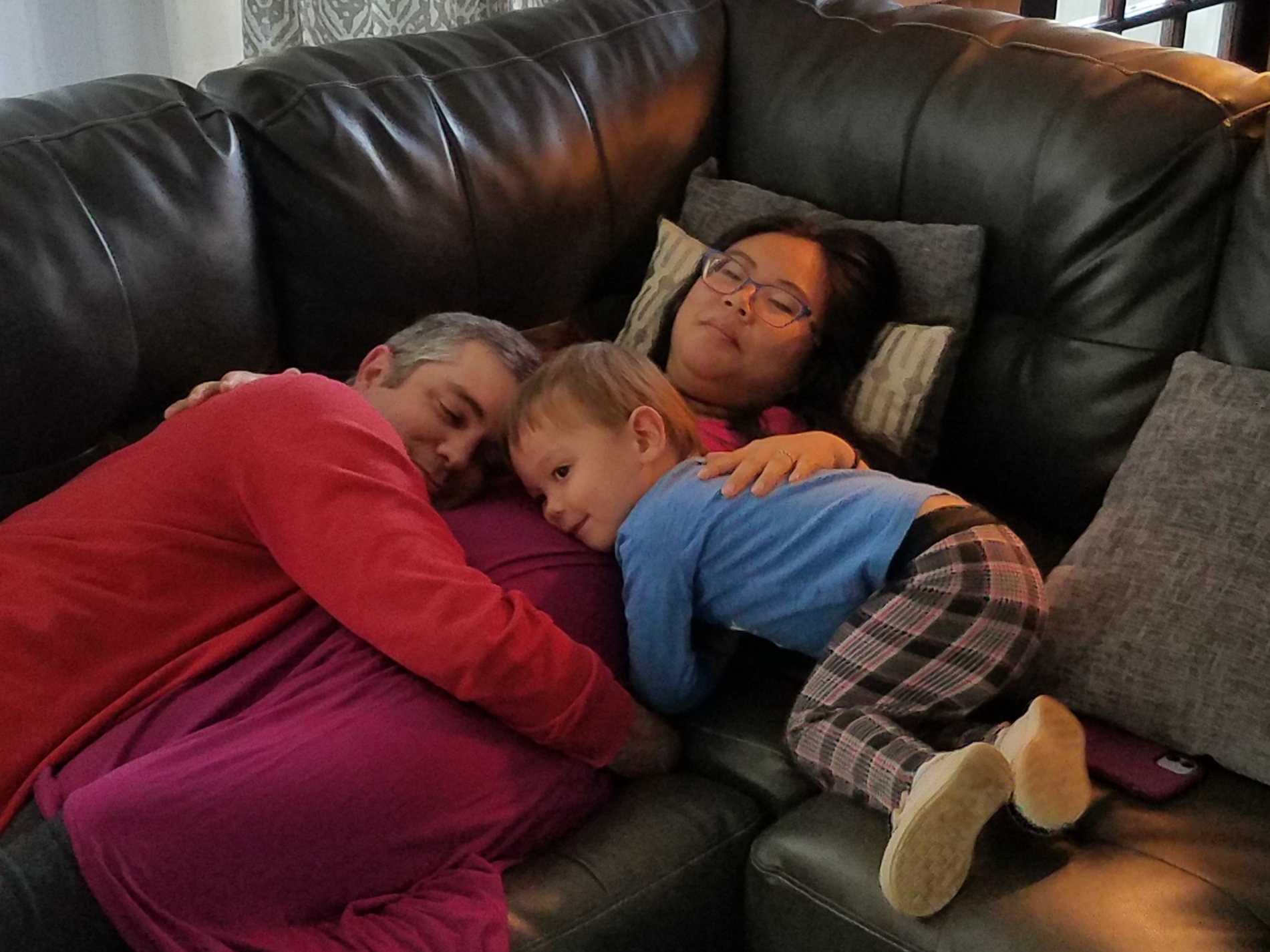 The picture of Becca, Corwin, and Rey is delightful. C looks like he’s listening for a double heartbeat! (The other pictures are also great.)