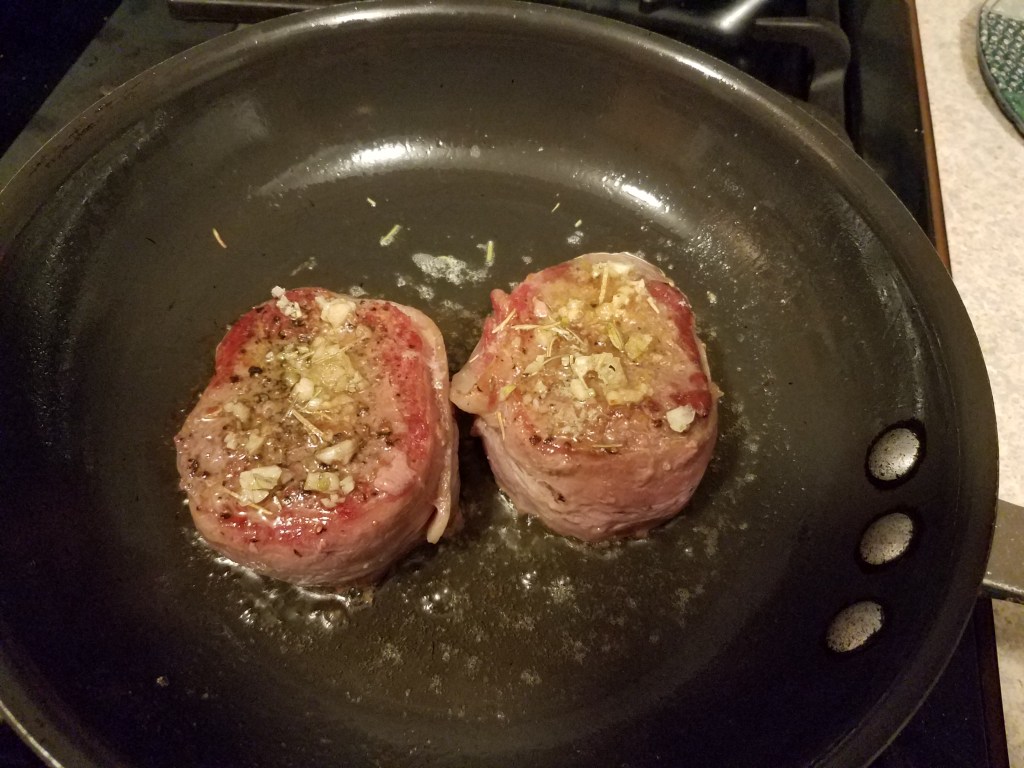Continuing on the food theme, we went shopping, in a grocery store yesterday. The goal was a small prime rib for Christmas dinner. While we were browsing we happened upon some bacon-wrapped filet mignon. They were not outrageously priced, actually very reasonable, so we got them too. Christmas Eve Eve’s dinner was very tasty. Mind you we normally have beef maybe once a month, so special times.