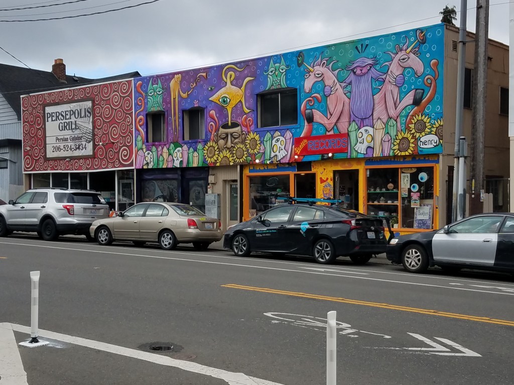 On my Saturday sojourn to the farmer’s market I spied a new Henry artwork. It is only a few blocks from our house, over a new record store.