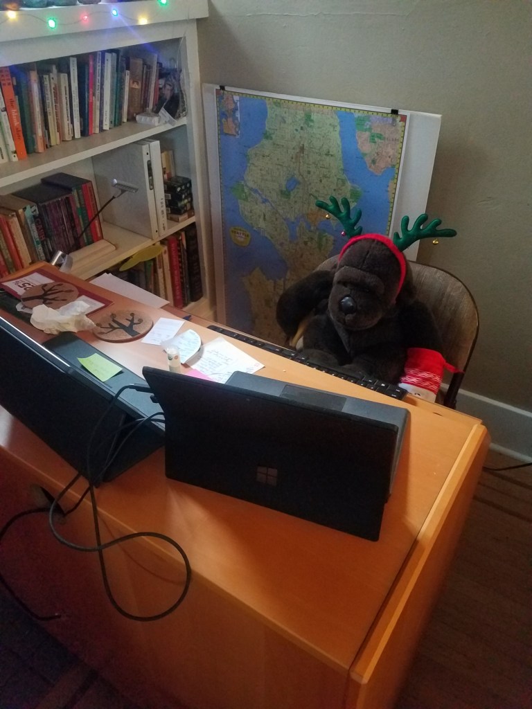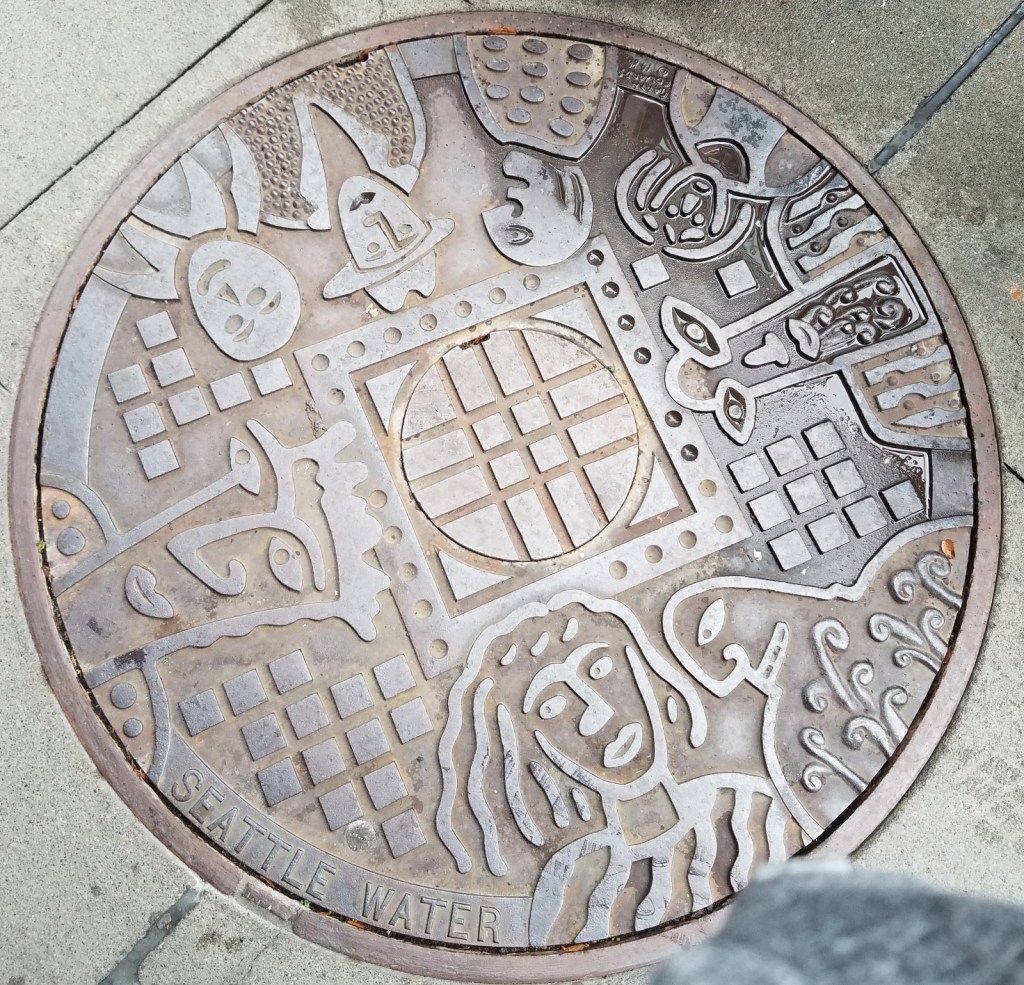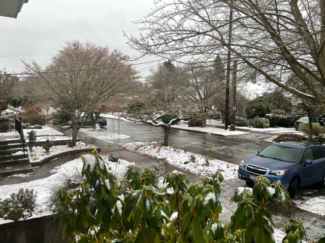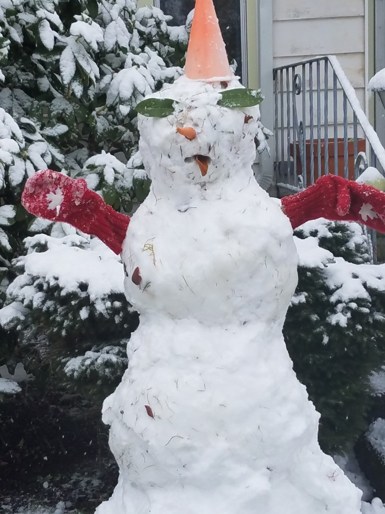 Traveled to Portland to join others in a film show paying tribute to the late Dennis Nyback. It was just a 24 hour trip, but interesting nonetheless. In the Bluebird Inn we stayed at in Portland. I don’t think I have seen a sink quite like this before In honor of the US Men’s Soccer Team in the World Cup Snowman created before the opening game of the World Cup. The games started at an early, but reasonable hour. Hence the darkness A shopping trip including the Pike Place Market gave us an opportunity to find our tile. This was pre-kids, so just the two of us. We found the Big W. Think It’s a Mad, Mad, Mad, Mad World Utility Cover that I liked This year’s tree. We used about 1/4 of the picture ornaments from Carl’s Mom. You can zoom in to see the details I did manage to get to the office occasionally, but that doesn’t mean the home office was deserted. This was the snow before the ice storm You know how it is you can never think of anything you want when asked. And then ideas just show themselves. This is somewhat repaired. I was using the Split Pea soup recipe, but the book is stuck on lamb recipes. Post ice event. It’s about 1/4″ thick and basically as slick as it looks. We went nowhere Christmas Eve dinner. Chinese of course. Our tradition of about 4 years. Hint: Order at least a few days in advance. This was the day after the day of no travel, even to the end of the block.