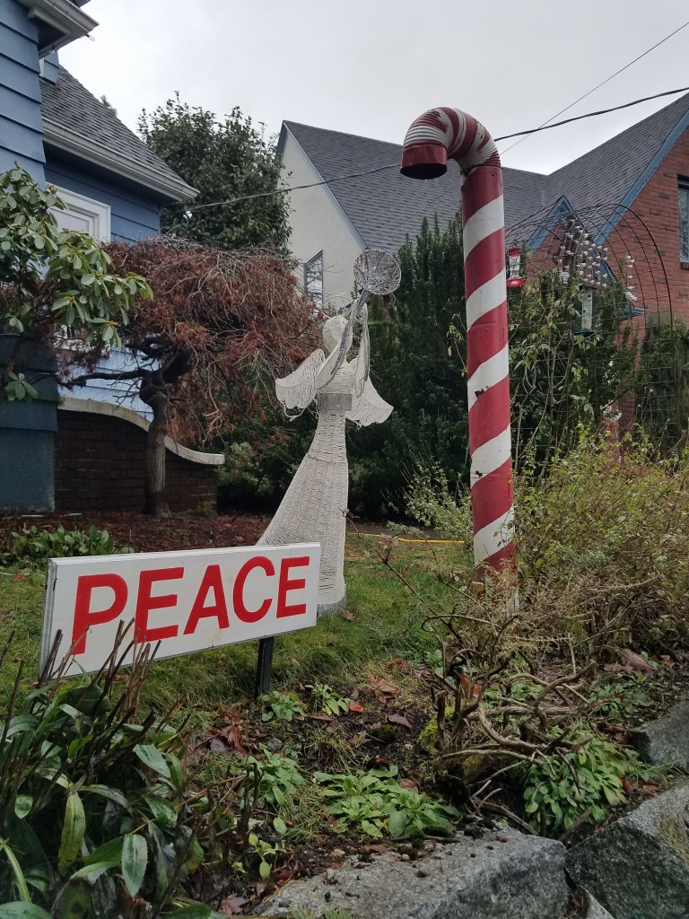 Merry Christmas. We had a lovely day and prepared food already in the house. Luckily this included filet mignon, from much earlier in the week, so we ate well. We did manage to get out for a walk to Candy Cane Lane, a small area within walking distance, that has been decorating since 1949.