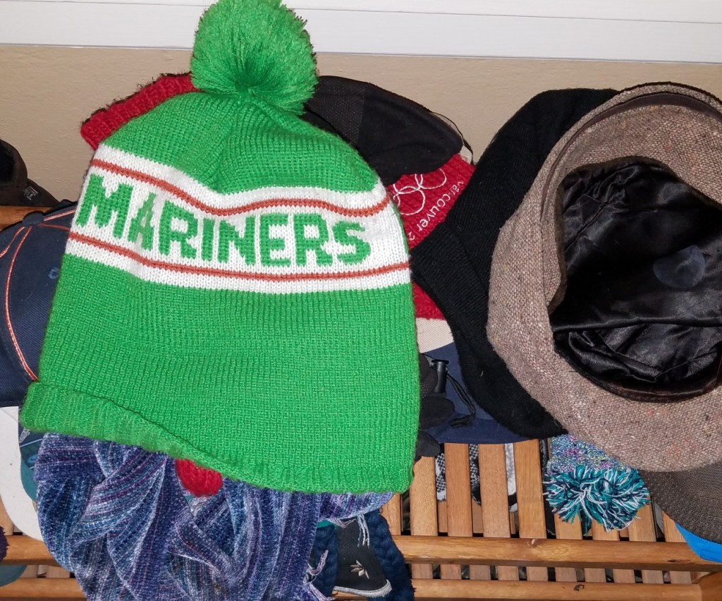 Carl had a conversation with a friend on the telephone on Friday or Saturday. There had been a picture around with Carl sporting a green Mariners knit hat, and the friend commented on the hat in particular. Carl remembered I had been given the hat as part of an appreciation bag once when I was a handler for Wayne Drop (District Mascot) at Mariners Kids Day. And he had never seen it elsewhere.