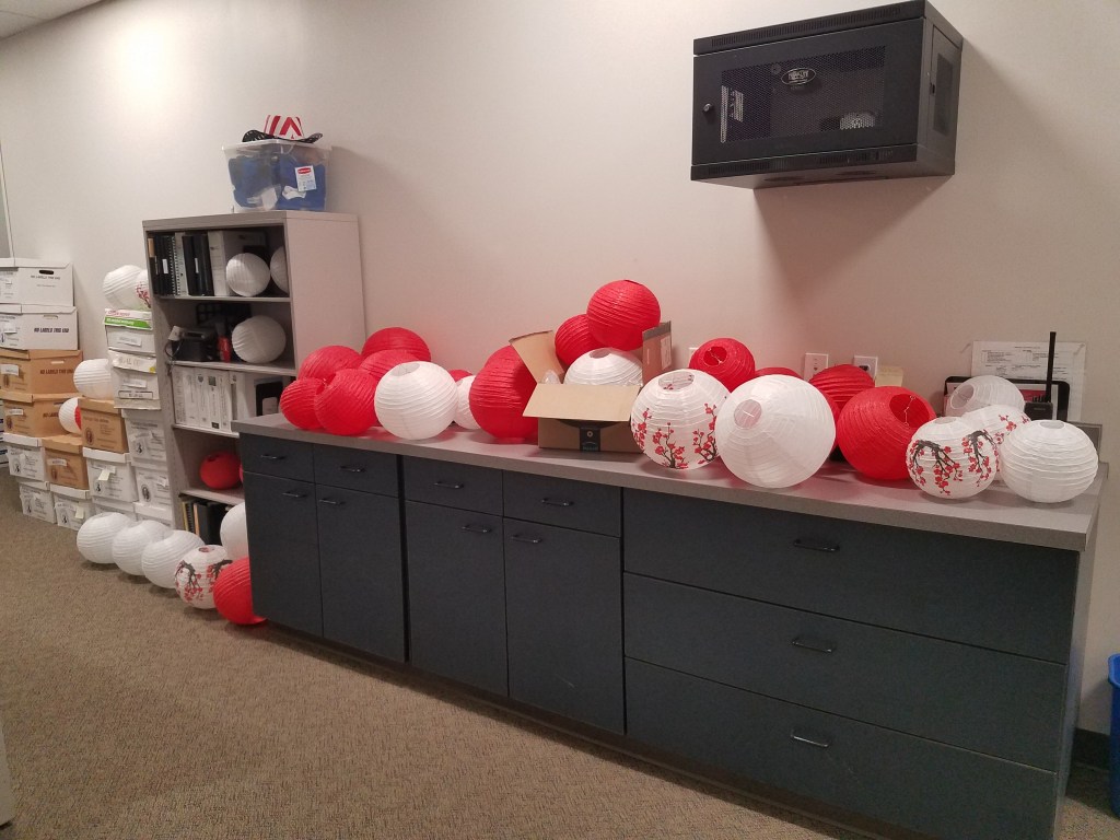 Non-work work event at lunch today. Happy New Year! The lanterns being assembled.