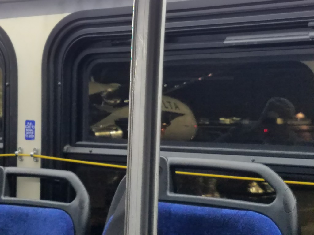 Here is a very hard to decipher picture of planes back ends. I always thought that once I had exited the plane through the jetway, my time on the tarmac for that flight was over. Not so yesterday. We exited, walked for a while and were then directed to a staircase, down, and onto a bus. The bus took off across the tarmac, behind the planes being loaded and unloaded. Use your imagination with the picture, it was dark.