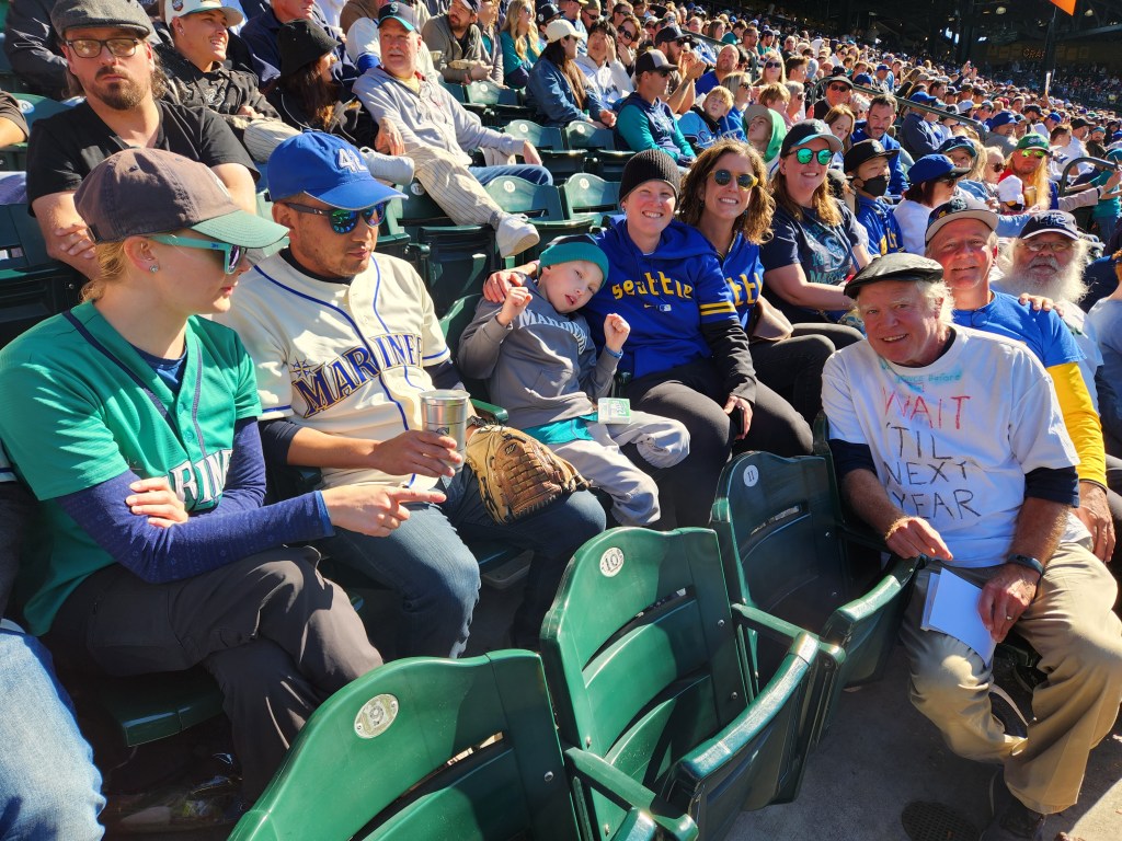 The last Mariners game on Sunday was fun, although too little too late. The Ms won, and we had the opportunity to chat with several different friends and fellow fans. We actually just about closed the joint. They were starting to clear the stands, as the players’ kids ran around on the field.