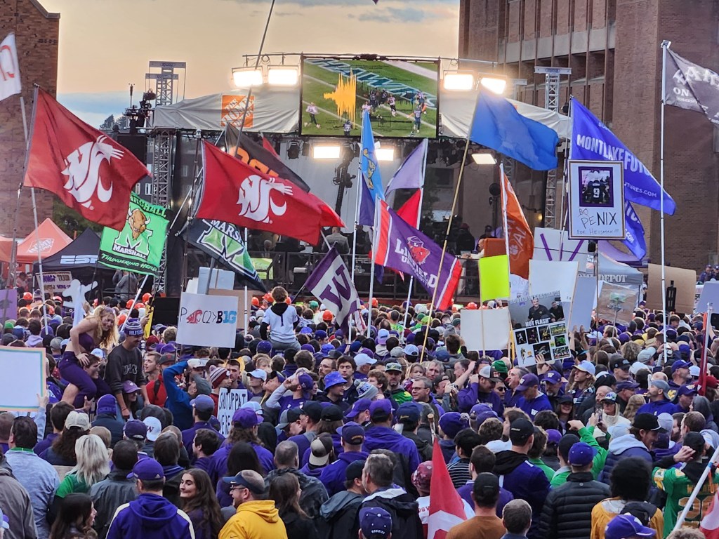 The weekend events started with Game Day. For those that don’t know, GameDay is an ESPN product that runs from 9 to 12 AM each Saturday during the college football season. They set up on a campus, and the students create the backdrop for the show. Because sports in the US are biased towards the east coast, that is 9 to 12 AM Eastern time zone, or 6 to 9 AM Pacific. And the good spots are allowed to fill at 4 AM. The question is, did they get up early or stay up all night?