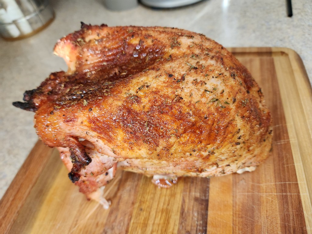 We finished our Thanksgiving lunch, as it turned out. My initial ETA was somewhere around 3 PM. Actual time was around 2 PM. The cooking time estimates bone or no bone were the issue. Luckily, preparation for the other dishes was basically done, so it just meant eating early.