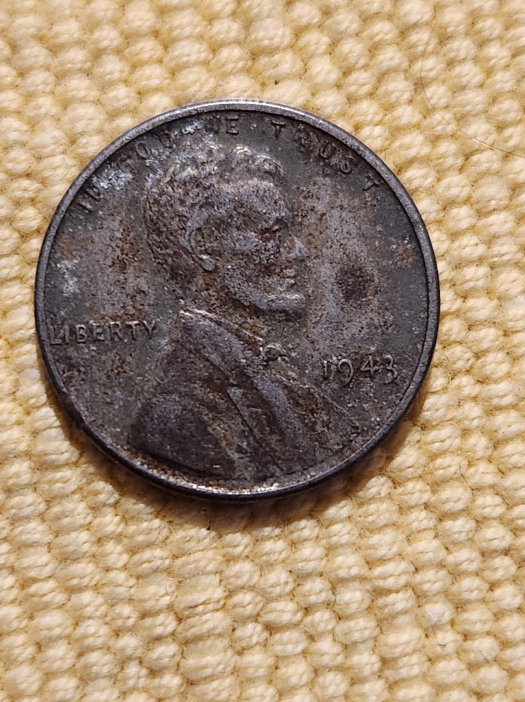 The date on this particular penny is 1943, which means it’s a Steel Penny. They changed to steel in 1943, with only dated 1944, because they needed the copper for the war effort.