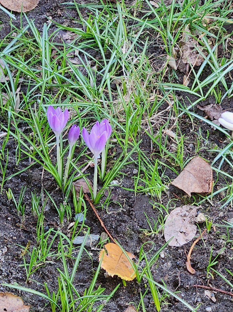 Neighborhood crocuses, not ours, but we do have daffodils poking out their leaves and maybe even a tulip. It’s been easy to convince myself to go for walks, but I would be happy if it was a few degrees warmer. Not complaining though.