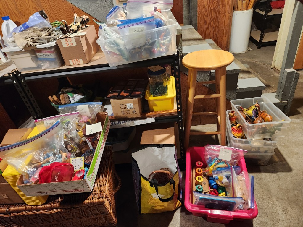 The toy project is pretty complete and moved to the basement waiting for the garage giveaway. There are more already in the garage. The stuffed animal review is on hold until after spring training.