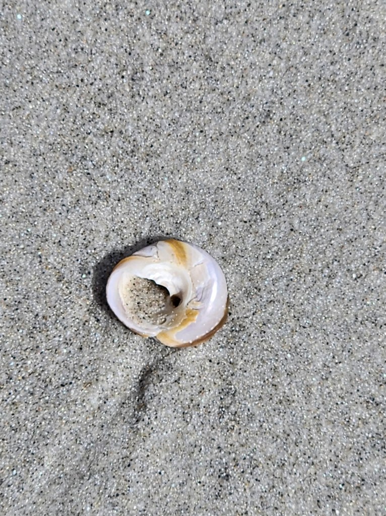 Coconut curry with cod sounds delicious! I love beautiful sandy beaches. That mussel shell is very pretty.