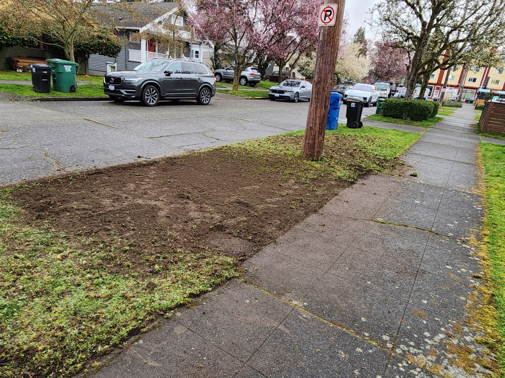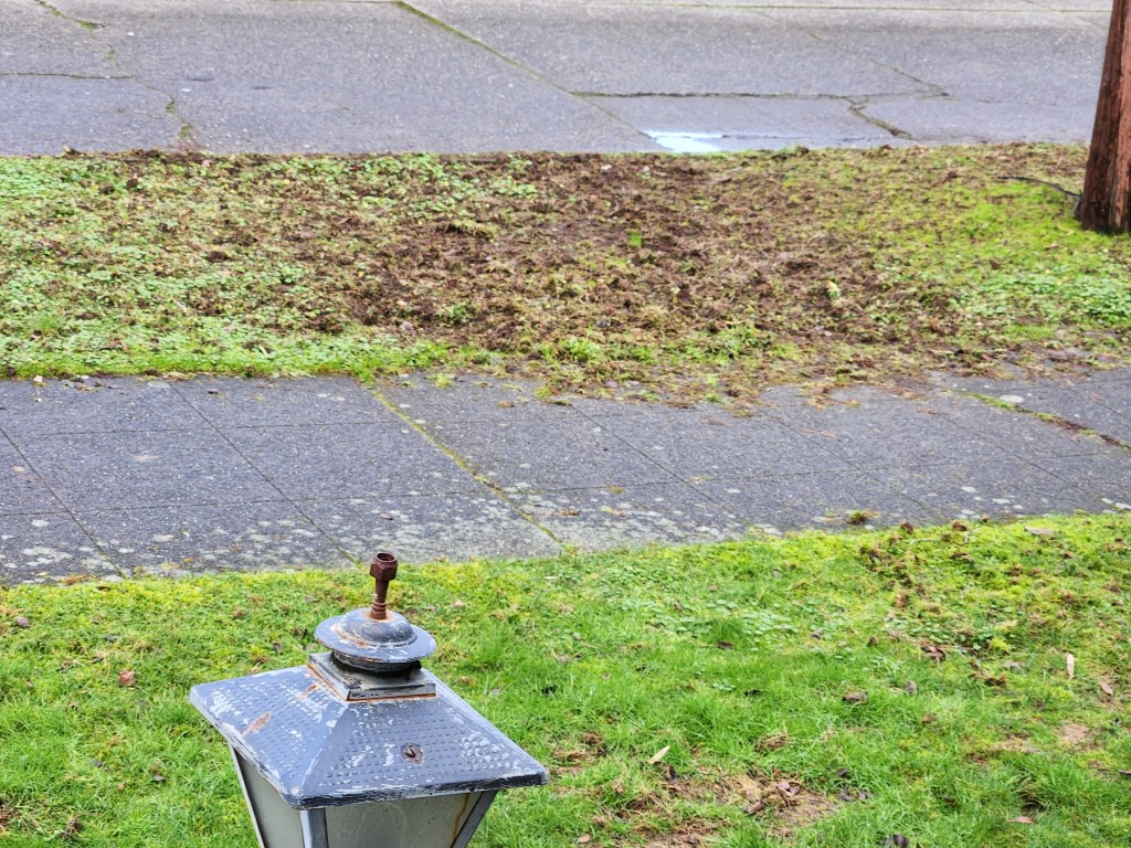 Then he moved to the  crow destroyed front yard parking strip.