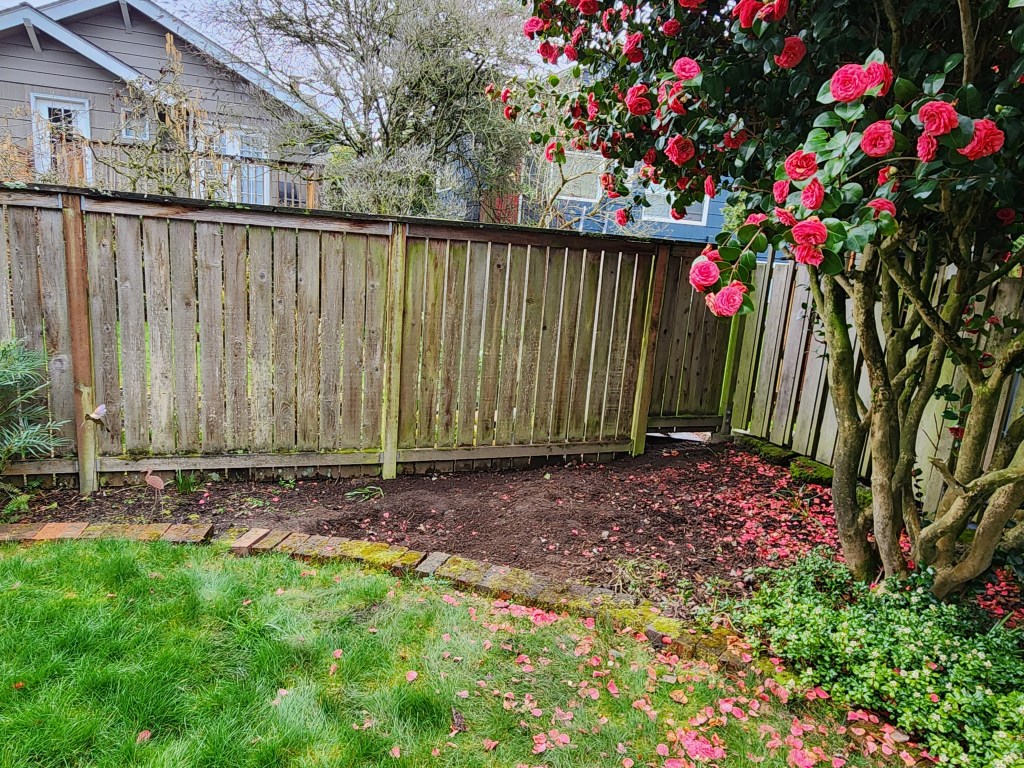 The plan is to plant micro clover and grass and see what happens. When I stepped out to take this photo there was a crow in the middle of the cleared area.