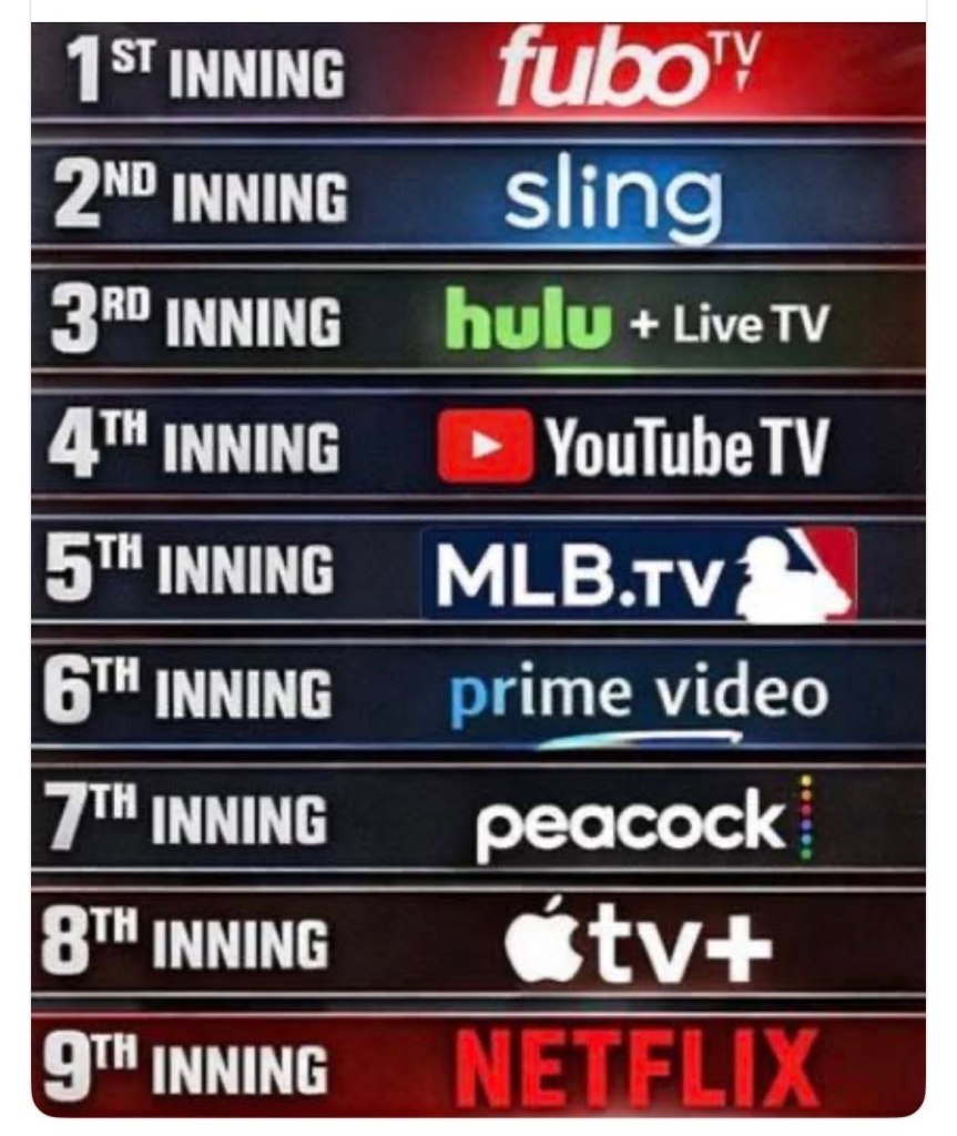 And for those who have been trying to figure out where to watch a baseball game on TV, I share the following.  The Mariners first 4 games have been on 3 different platforms.