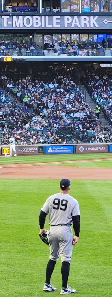The game was made a bit more fun by texting with a Yankee fan in New York who we met at the Hall of Fame last summer. He’s hoping to make it to Seattle for a game, but the timing didn’t work out this year. He gave me an Ichiro Yankees hat at the Hall of Fame induction. Maybe I’ll wear it tomorrow.