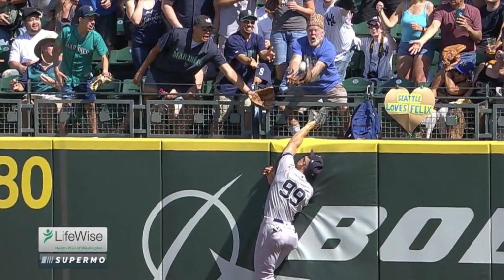 From 6-1/2 years ago, a warm summer afternoon game. Carl catching a home run that Judge is wasn’t quite tall enough to get.