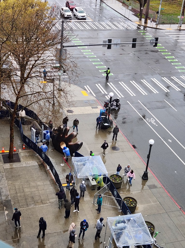 T-Mobile Park has a “roof” but it’s really more of an umbrella. Those familiar with umbrellas know that it is possible for rain to get under the canopy, especially with wind. And we were rained on almost the entire game yesterday.