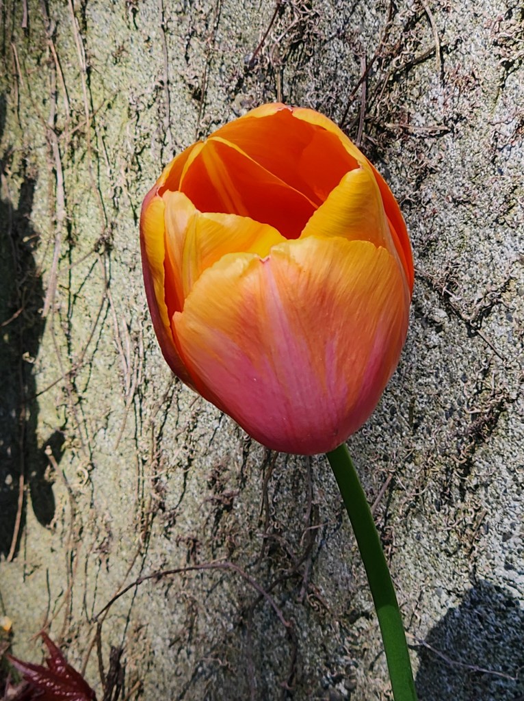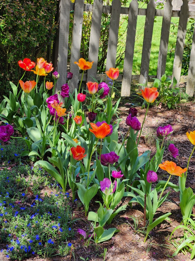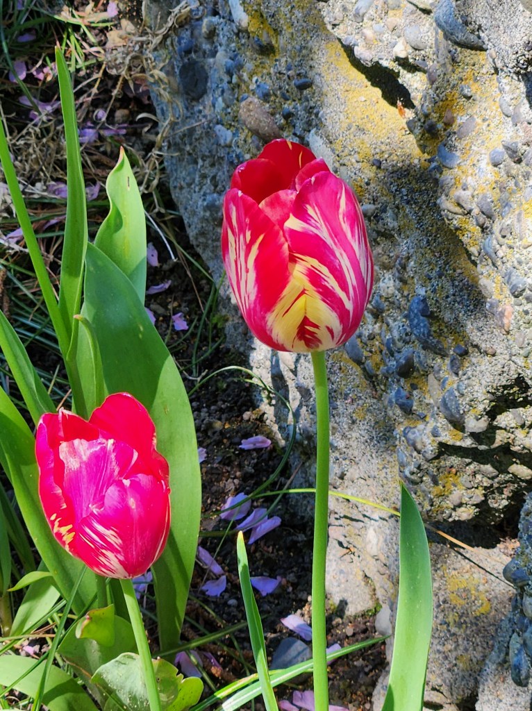 I love those tulips! They are exactly the colors I prefer. Liquid encouragement is always good. 🙂