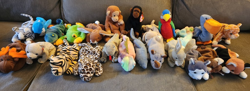 Our youngest grandson, by 3 weeks, turned 4 a few days ago. I believe they had a joint birthday party with a few kids. As part of our house clean-out we had sent several beanie-babies to use as party favors. After food they were put on the table and the kids were allowed to choose. One of Elijah’s friends whom we have met chose a Sammy “Sosa” bear, and was seen carrying it the next day. Apparently they were a big hit. That makes me so happy. They get a second life.