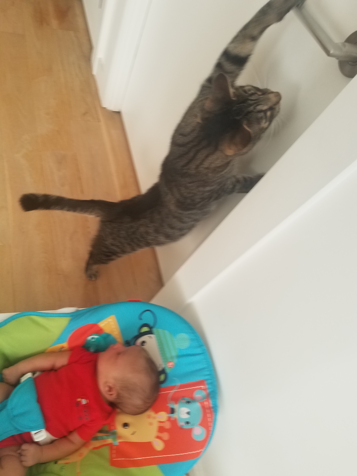 Master of all he surveys Theo starting his duties as the older brother, demonstrating how to open doors