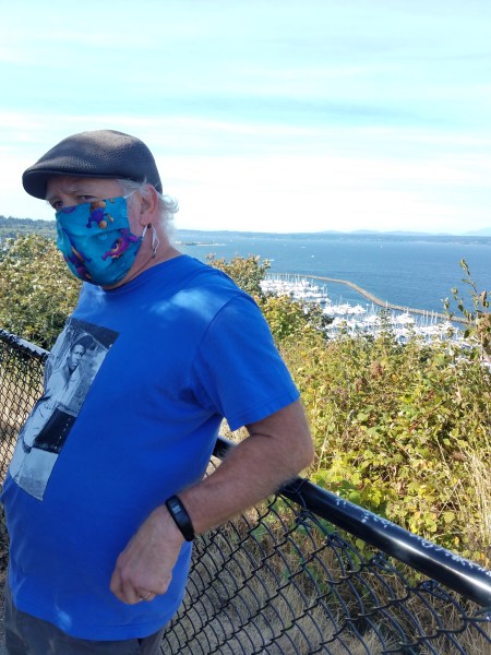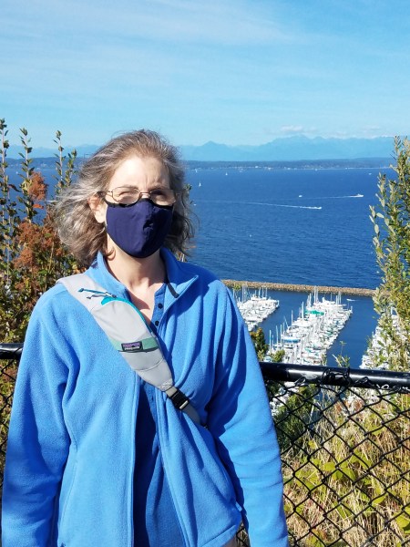 300 actual stairs plus some dirt switchbacks. We went down. There was an alternative to follow the curvy road down. I would not normally choose the road because – cars on a very windy road with no sidewalks. Seattle has closed a handful of roads to traffic to give the Covid walkers and bicyclists more room to socially distance while getting out of their houses. This road is one of those.