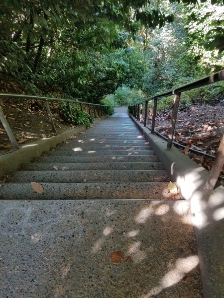 The next segment was fairly level as we continued north to a staircase and path. Which led to the western, very much downhill, segment.