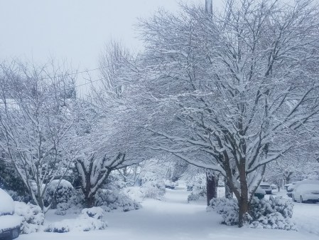It snowed/sleeted Monday night.