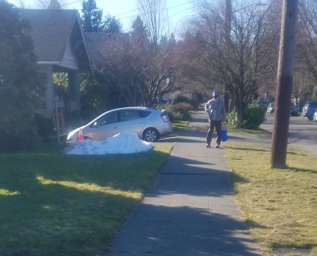 It is now Wednesday evening and we are going home from work. Tomorrow I will be driving myself in with the Prius. If it is like today, no problem. If it starts to snow I will head home. Carl graciously filled the tank today so I won’t worry about getting into any big backups.